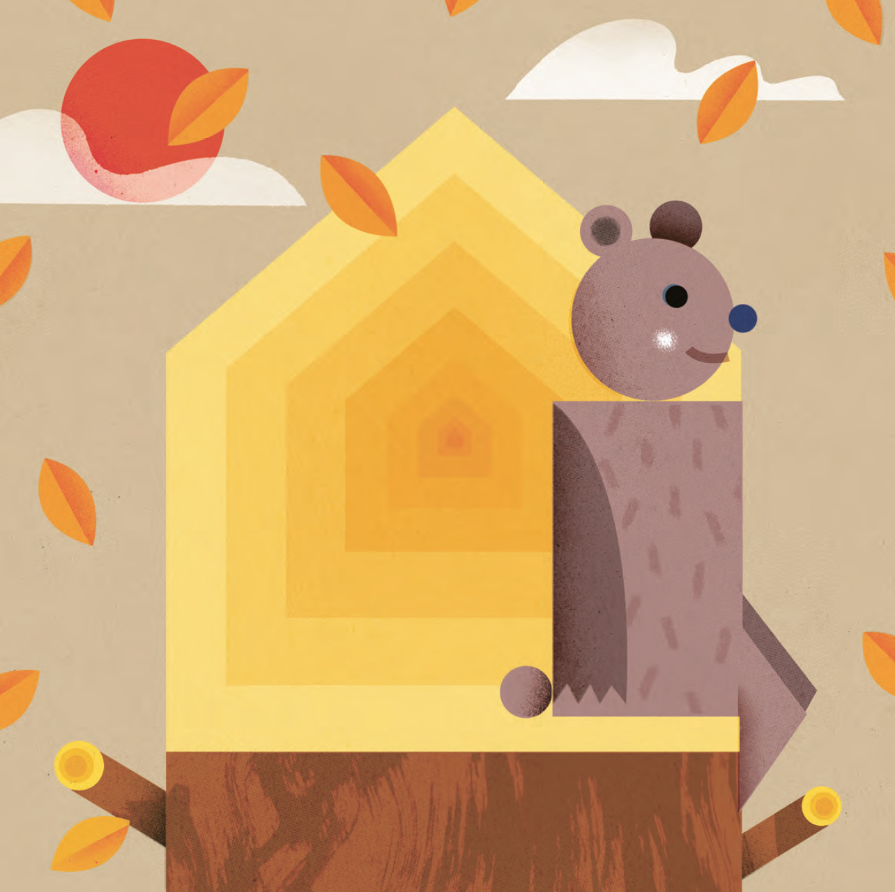 Young readers will discover the different places that animals inhabit and the ever-changing meaning of the word “home”: what is home for a cat, a squirrel, a bat? Through brilliant geometric illustrations, this delightful book transforms the classic shape of a house into something different, revealing the various habitats (and habits) of the animals.